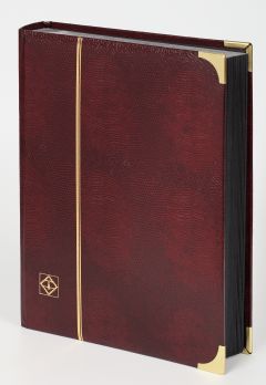 This new line of stockbooks features a padded alligator-textured cover and gold-plated metal corners which are sure to impress. The 64 black pages made from extra-strong card stock come with 9 clear strips and double glassine interleaves. They are double-linen hinged to lie completely flat.